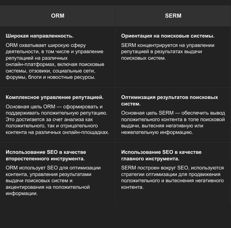 При подключении ORM важно внимательно взвесить все «за» и «против» такого метода улучшения репутации в интернете. К первым относятся: