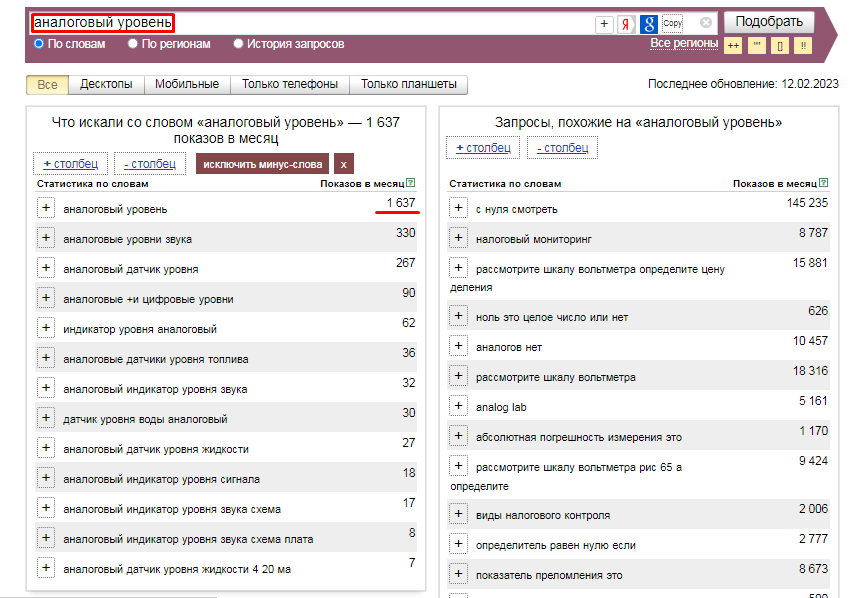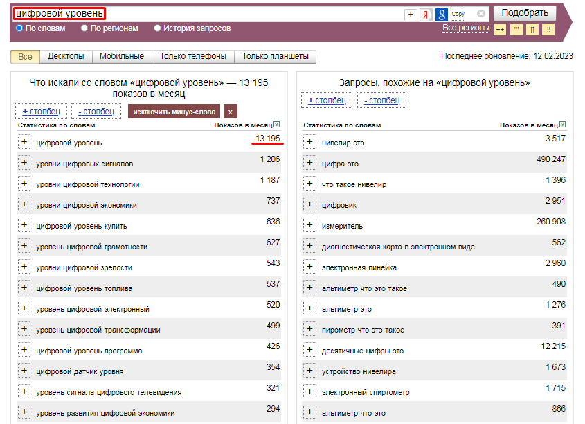 А вот аналогичная статистика по запросу «цифровой уровень»: